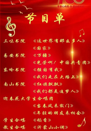 青年之字典,無困難之字;青年之口頭,無障礙之語;惟知躍進,惟知雄飛,惟知其本身自由之精神,奇僻之思想,銳敏之直覺,活潑之生命,以創造環境,征服歷史。青年,讓我們接過那帶著百年體溫的火炬,把青春和熱血,獻給我們熱愛的祖國!