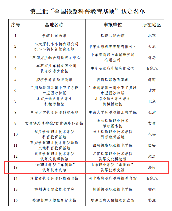 5月9日,中國鐵道學會公布了第二批“全國鐵路科普教育基地”認定名單,我校“車同軌”鐵路技術史館成功入選。