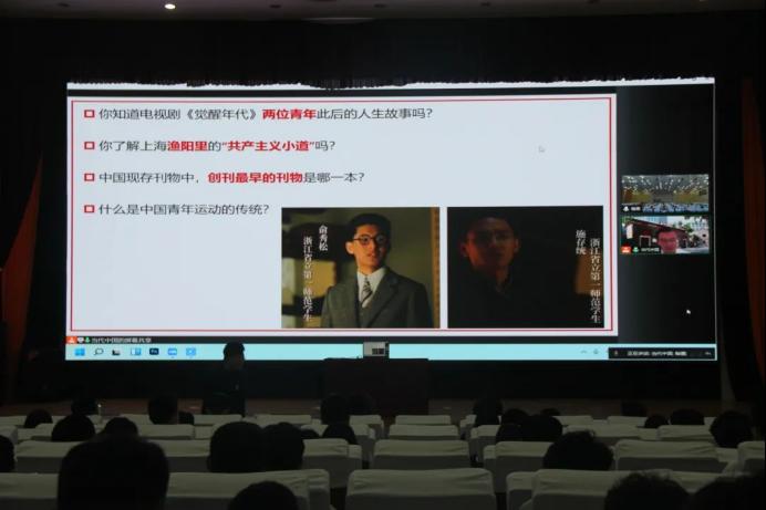 開班第一課是由馬克思主義學院(思想政治教育研究中心)王楠老師帶來的《中國共產主義青年團的創建》。王楠從上海團組織的建立開始講起,介紹了各地團組織的建立、團的一大等重要史實,最后以習近平總書記在慶祝中國共產主義青年團成立100周年大會上的講話寄語青年人結束授課。
