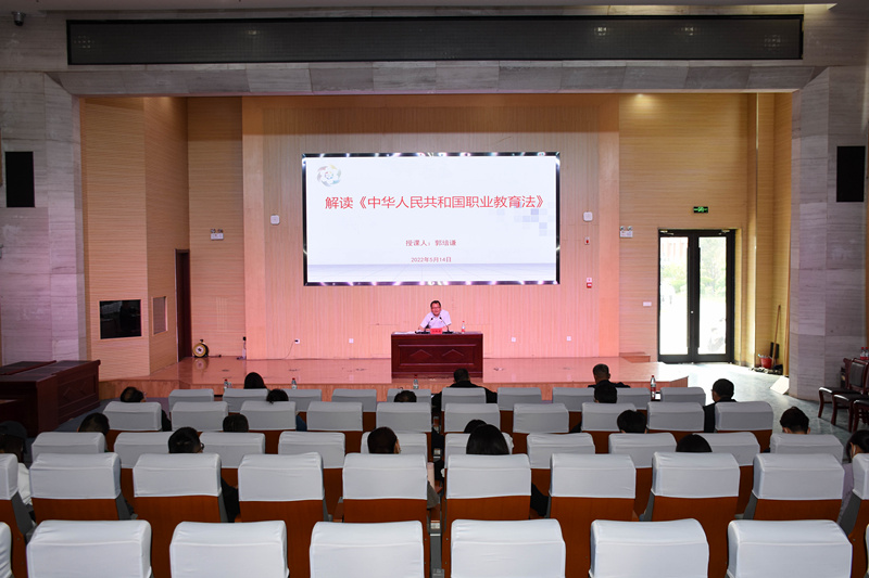 5月14日下午,黨委副書記郭培謙在圖書行政樓東報告廳以《解讀<中華人民共和國職業教育法>》為題講授黨課。學工第一臨時黨支部、學工第二臨時黨支部黨員參加。