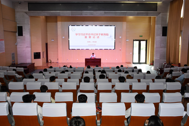 5月14日,黨委副書記郭培謙在圖書行政樓東報告廳以《學習習近平總書記關于教育的重要論述》為題給學校學生會、自律會學生干部講授思政課。學生工作處、團委、書院的在校黨員教師隨堂聽課。