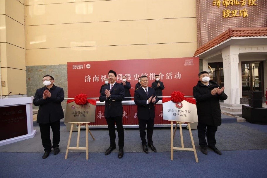 1月19日,山東首座鐵路機務系統文博館——濟南機務段段史館正式開館。學校院長郭培謙出席開館推介活動,與國鐵濟南局黨委副書記李翔鵬,國鐵濟南局副總經理王德明,中國鐵道博物館黨委副書記、紀委書記、工會主席劉恒,山東省文化和旅游廳博物館處處長榮瑞峰等領導共同為濟南機務段段史館開館揭幕,為濟南機務段段史館“山東職業學院研學基地”揭牌。