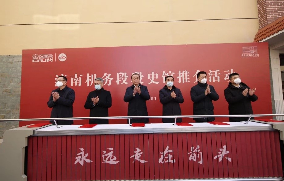 黨委(學院)辦公室主任張少飛、鐵道機車車輛學院院長龐繼偉陪同參加段史館開館推介活動。山東省相關專家學者、國鐵濟南局相關部門負責人、濟南地區各單位負責人、機務段職工代表參加推介活動并參觀了段史館。