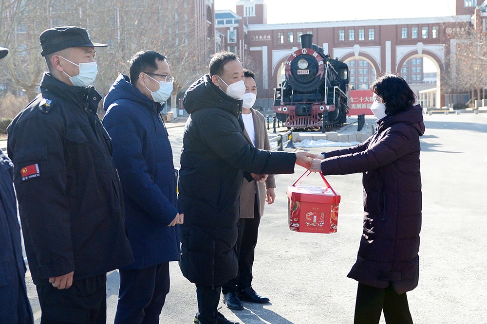 1月20日是臘月二十九。上午10時起,學校黨委書記趙鳳文、校長郭培謙深入校園監控中心、北校門值班室、校能源站、校醫院、餐廳等地,看望慰問春節期間堅守工作崗位的干部職工。副校長郭鵬一同看望慰問。