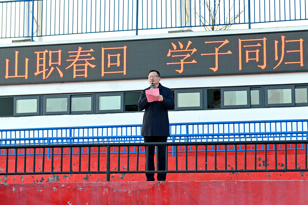 山職春回,學子同歸。2月20日清晨,學校師生在運動場舉行了新學期第一次升旗儀式。院長郭培謙及有關部門人員、1000余名學生代表參加了升旗儀式。