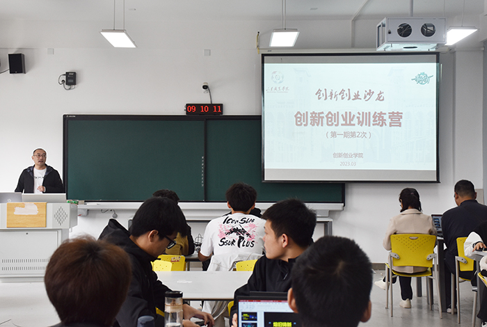 訓練營上,創新創業學院副主任張為賓結合“挑戰杯”競賽評審標準和國賽金獎案例,對參訓項目的路徑梳理、路演PPT框架設計及制作技巧進行了經驗分享。