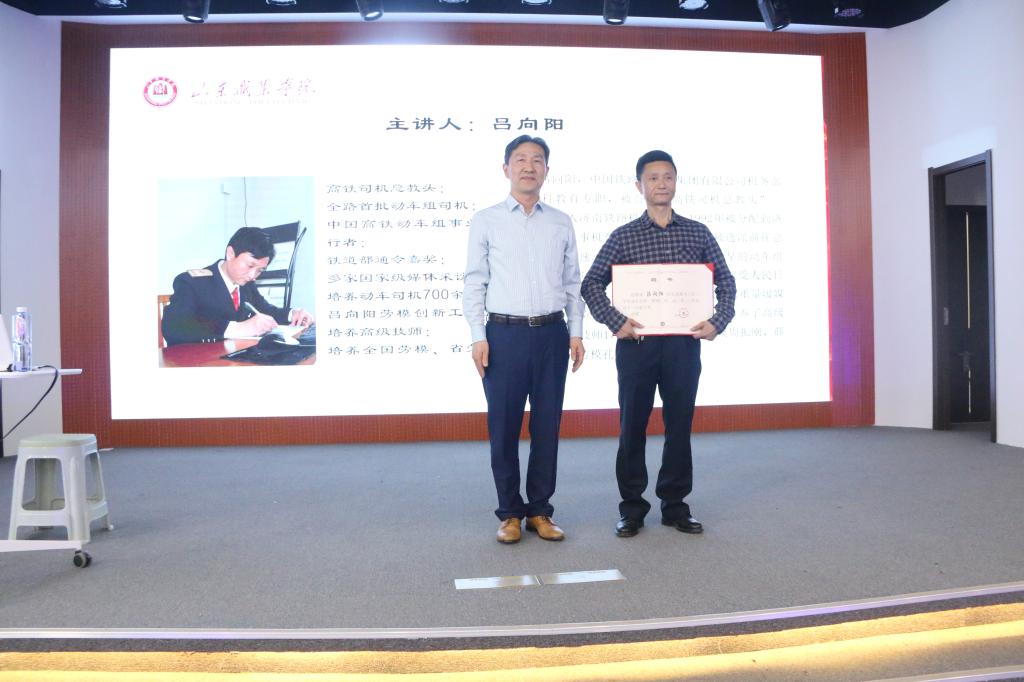 “人文大講堂-勞模工匠進校園 匠心筑夢育未來”則是邀請了我校88級校友、濟南鐵路局高鐵司機勞模呂向陽,在多功能音樂廳為同學們帶來了一場精彩的報告。副院長王紹軍出席活動,并為呂向陽頒發了“大工匠-學生成長導師”聘書,以表彰他在高鐵行業中的卓越貢獻。呂向陽于2006年經過鐵路局和鐵道部層層選拔,被派往意大利參加動車組學習,成為我國第一批高鐵司機。他的事跡被央視新聞和朝聞天下播出報道,先后接受過人民日報、光明日報、中國青年報等7家媒體采訪,2007年榮獲鐵道部嘉獎。呂向陽以《科學職業觀 立足崗位有作為》為題,講解了個人簡歷,分享了自己的人生經歷和在高鐵事業中的成長歷程,勉勵同學們要立足崗位有作為,并為同學們提供了很多寶貴的就業建議。報告獲得了學生們的高度評價,紛紛表示受益匪淺,對未來就業前景更有信心。