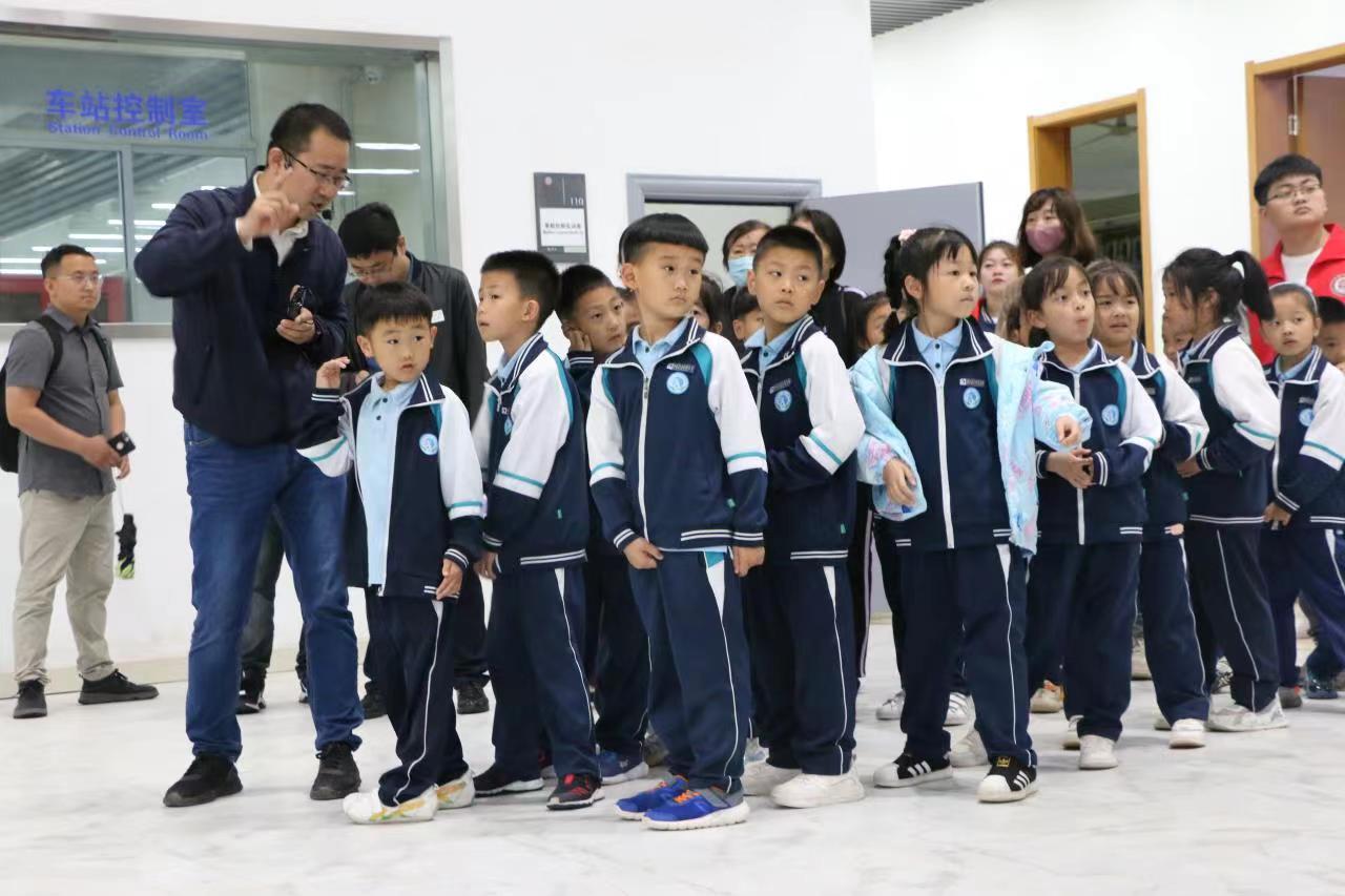 了解知識,更要“出手”一試。在我校城市軌道交通實驗實訓基地,城市軌道學院副院長于楊帶領孩子們認識了模擬濟南地鐵二號線打造的山職號機車、仿真售票大廳、行調室、模擬駕駛室等,并為同學們講解模擬駕駛的操作流程。學生們興致盎然,紛紛踴躍回答問題并爭前恐后地擔當“駕駛員”,體驗來自服務和奉獻的職業樂趣。
