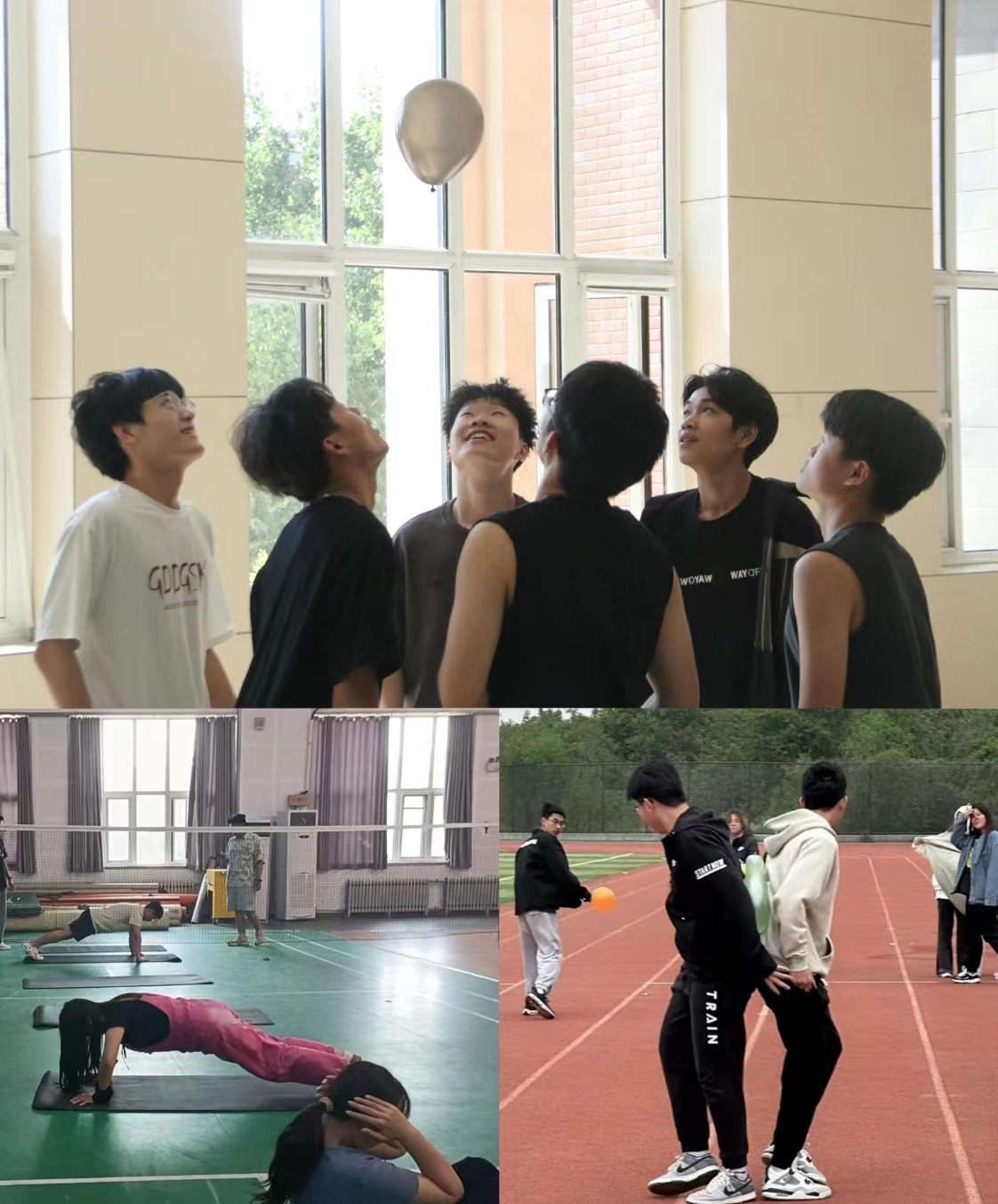 運動身心,享受健康快樂。“六人成行”“伏地挺身”“萬球一心”等活動,精彩紛呈。“加油!”“1、2開始”等熟悉的口號,整齊不太劃一的動作,手握計數器記錄著俯臥撐的個數,傳來一陣陣的歡聲笑語,透著活動的精彩熱鬧,熱烈活躍的氣氛,透著同學們喜悅的心情,彰顯了團結協作精神。