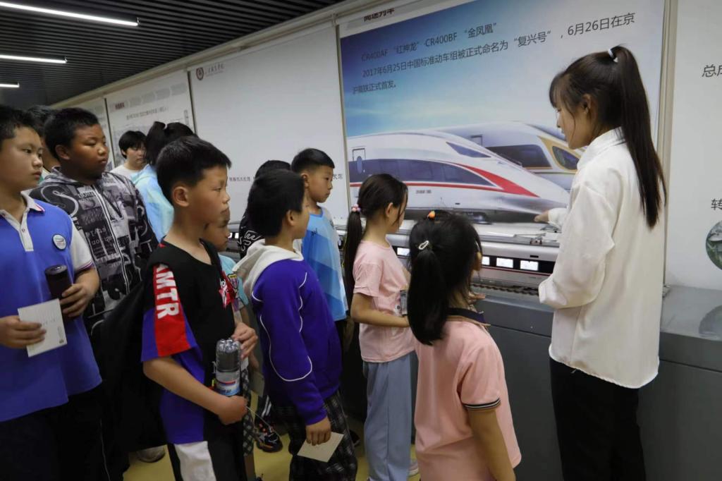 參觀了“車同軌”鐵路技術史館,史館的老師和講解員們用通俗易懂的語言向孩子們介紹了我國的鐵路技術發展史,孩子們近距離感受著史館內的鐵路機車模型和機車配件,對不同時期我國鐵路事業的發展歷程有了更加直觀的了解。