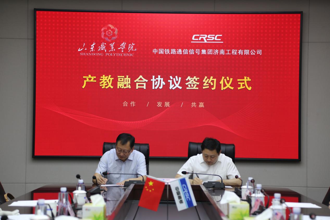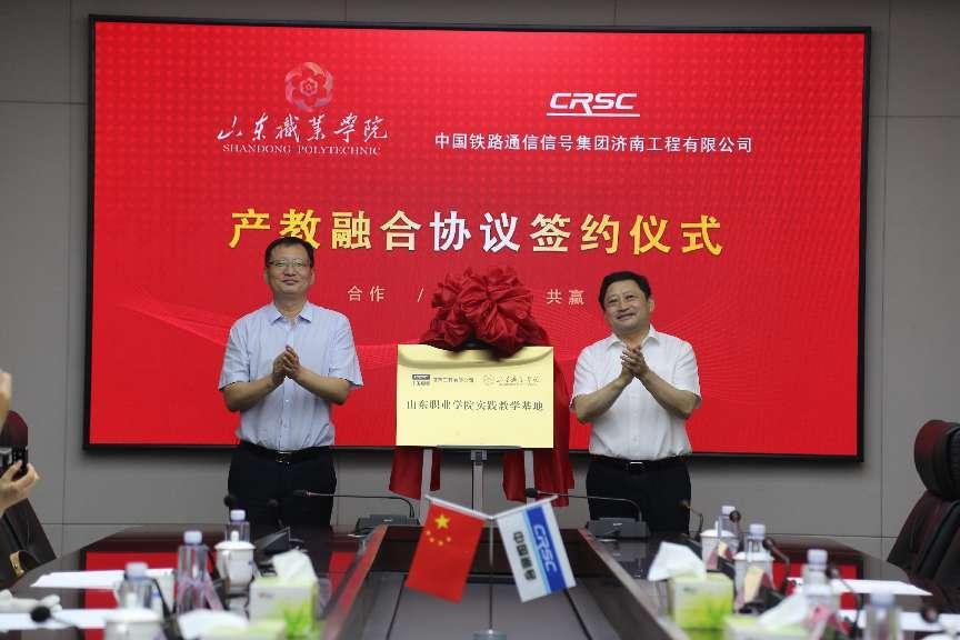 為全面貫徹落實黨的二十大精神,深入推進學習貫徹習近平新時代中國特色社會主義思想主題教育走深走實,6月16日,我校與中國鐵路通信信號集團濟南工程有限公司舉行產教融合簽約儀式。中國鐵路通信信號集團濟南工程有限公司黨委書記、總經理謝德勝,山東職業學院院長郭培謙參加簽約儀式并講話,共同為“教學基地”揭牌并簽訂《產教融合框架協議》。