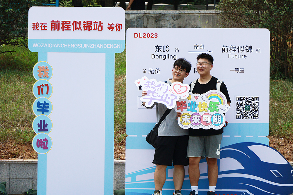 會場內外,中間廣場精心設計的畢業季展板,三角地、至谷大屏一條條飽含深情的條幅標語,給畢業季帶來更多的依依惜別與祝福,此去繁花相送,再遇依舊深情。