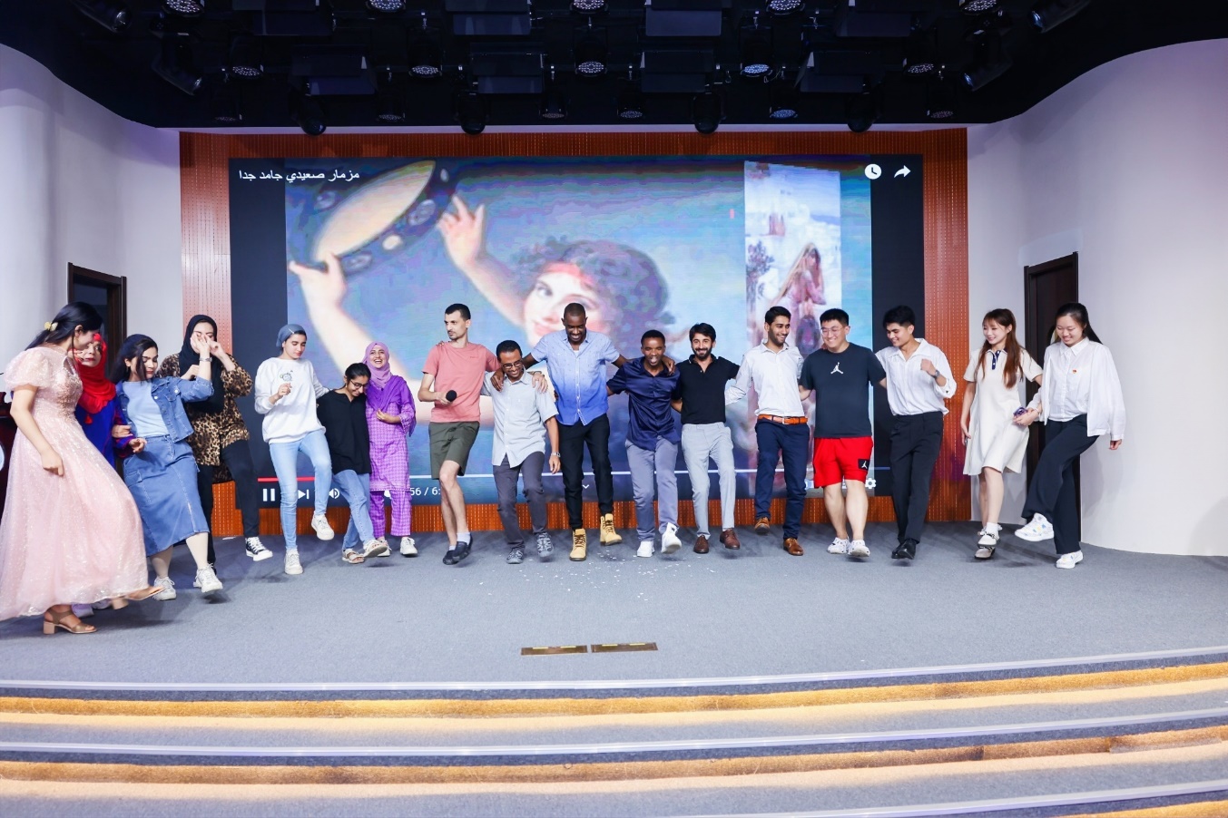 隨后,舉行了中外各國學生聯歡活動。中外師生紛紛展示了具有本國特色的才藝,大家輪番獻藝,載歌載舞,一首首歌曲悠揚歡快、一段段舞蹈自由奔放,把結業儀式的氛圍一次次推向高潮。
