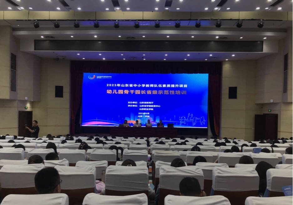 為強化全省園長隊伍建設,夯實園長專業素養,提升園長綜合管理能力,8月12日,由山東省教育廳主辦、山東省學前教育中心和山東職業學院承辦的“2023年山東省中小學教師隊伍素質提升項目”幼兒園骨干園長省級示范性培訓班在我校順利開班。山東省學前教育中心黨委書記、主任馮天曉,學校黨委副書記、院長郭培謙出席開班儀式并講話,全省幼兒園骨干園長共計300人參加。