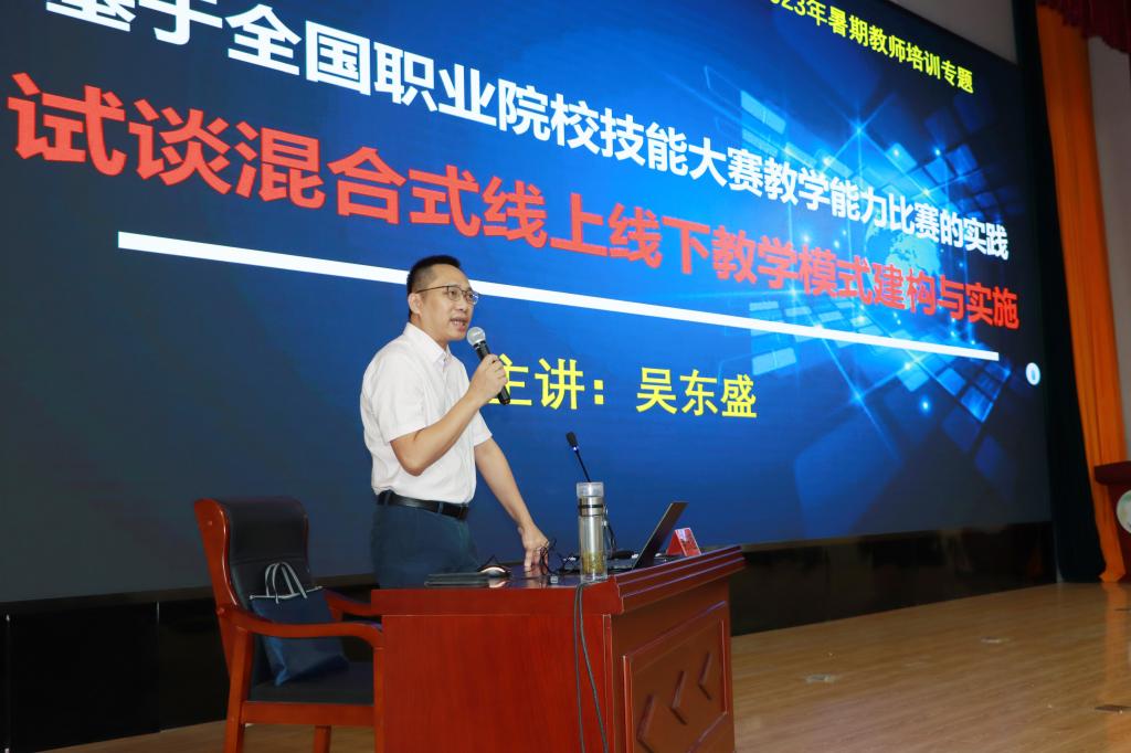 9月2日,邀請廣東輕工職業技術學院吳東盛教授作主題報告。吳東盛以《試談混合式線上線下教學模式建構與實施》為題,基于全國職業院校技能大賽教學能力比賽,結合自身參賽和多年輔導參賽的實踐經驗,從搭建“混合模式”、修訂“人培方案”、制定“課程標準”、撰寫“混合教案”、總結“實施報告”和探索“增值評價”等6個方面詳細解析了如何構建與實施混合式教學模式。