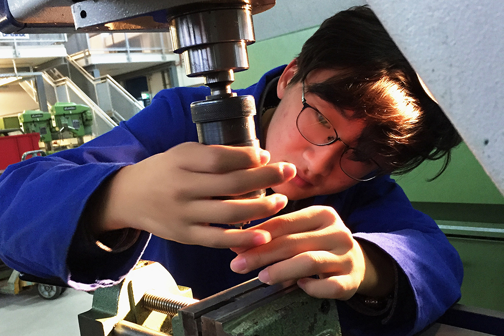 項目開始的第一周為適應性學習和操作。學院2位教師和6名學生在德方師生的幫助下,熟悉掌握德方機器設備的性能和使用方法,同時中德雙方學生一對一組成小組,加強交流磨合。經過一周的訓練提升,雙方學生越來越熟悉,默契度逐漸上升,一個小小的手勢或表情,彼此就會明白對方意思。