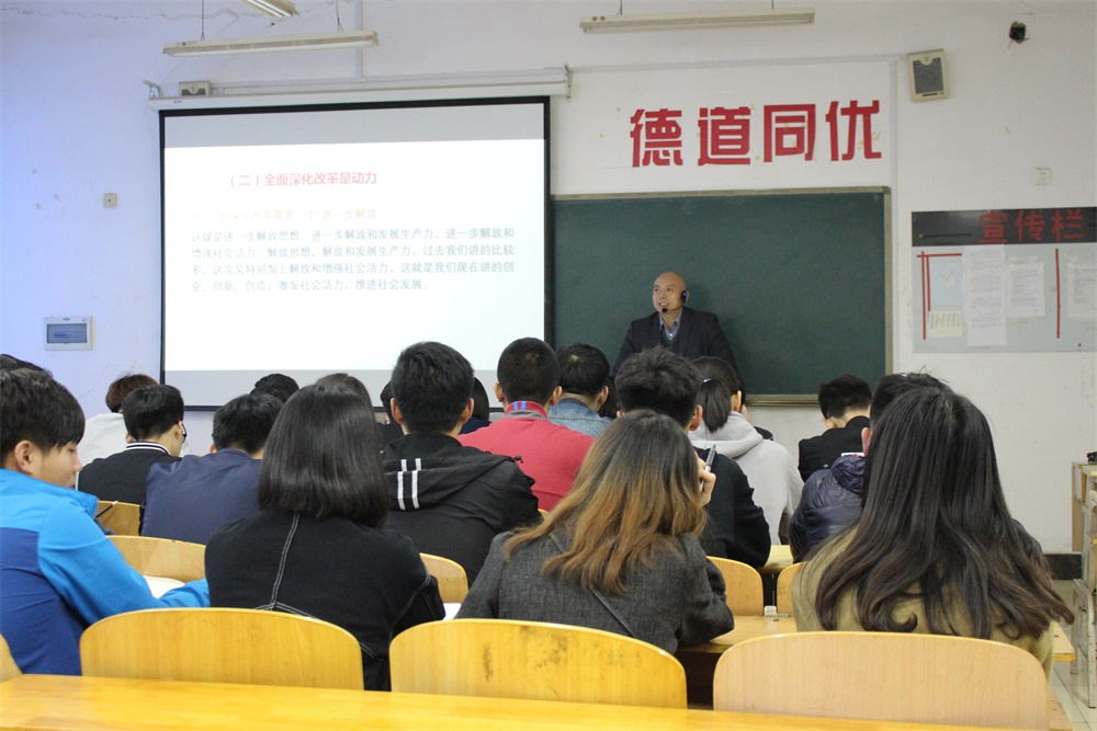 課堂上,郭書記從“四個全面”的由來,以及其內涵對樹立正確的入黨動機進行了全面的分析和講解。他講到,入黨動機是一個人要求入黨的內在原因和真實目的,是推動其爭取入黨的精神力量。對于黨的認識,同學們在成長的過程中要牢牢把握黨的歷史發展的主題、主線和本質,在歷史發展的辯證過程中,堅定中國特色社會主義信念。要有為共產主義和中國特色社會奮斗的堅定信念、要有全心全意為人民服務的思想和在工作生活中起先鋒模范作用,嚴格要求自己,認真學習黨的基本理論和基本知識,注意端正入黨動機,樹立立黨為公的思想和觀念,加強自我修養,努力提高思想道德境界,以身作則,起到模范帶頭作用。