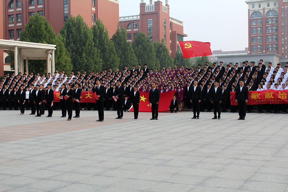 紅旗飄飄,鼓聲陣陣。大合唱在慷慨激昂的《沒有共產黨就沒有新中國》歌聲中拉開序幕。《映山紅》《游擊隊之歌》《保衛黃河》《團結就是力量》這些耳熟能詳的經典歌曲,讓我們重溫了黨帶領全國各族人民奮力奪取革命勝利的光輝歷史;《紅旗飄飄》《我的中國心》《大中國》《在燦爛的陽光下》等歌曲謳歌新時代,謳歌時代主旋律,抒發對黨、對祖國的滿腔熱愛之情。《站起來》等唱出了新時代大學生健康活潑奮發向上同心共筑中國夢的的良好精神面貌。合唱過程中還穿插情景再現、彩帶舞蹈、紅旗方隊行進等表演。合唱陣容整齊,歌聲嘹亮,飽含激情。大合唱在全場齊聲高唱《歌唱祖國》的歌聲中落幕,嘹亮的歌聲充分表達莘莘學子祝愿偉大祖國繁榮昌盛的美好祝愿。