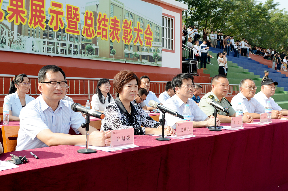 學院院長秦河、軍訓承訓部隊首長姜業華、副院長祝瑞花、紀委書記祝介安、副院長郭培謙,學院各系黨政負責人、有關處室負責人出席大會。大會由祝瑞花主持。