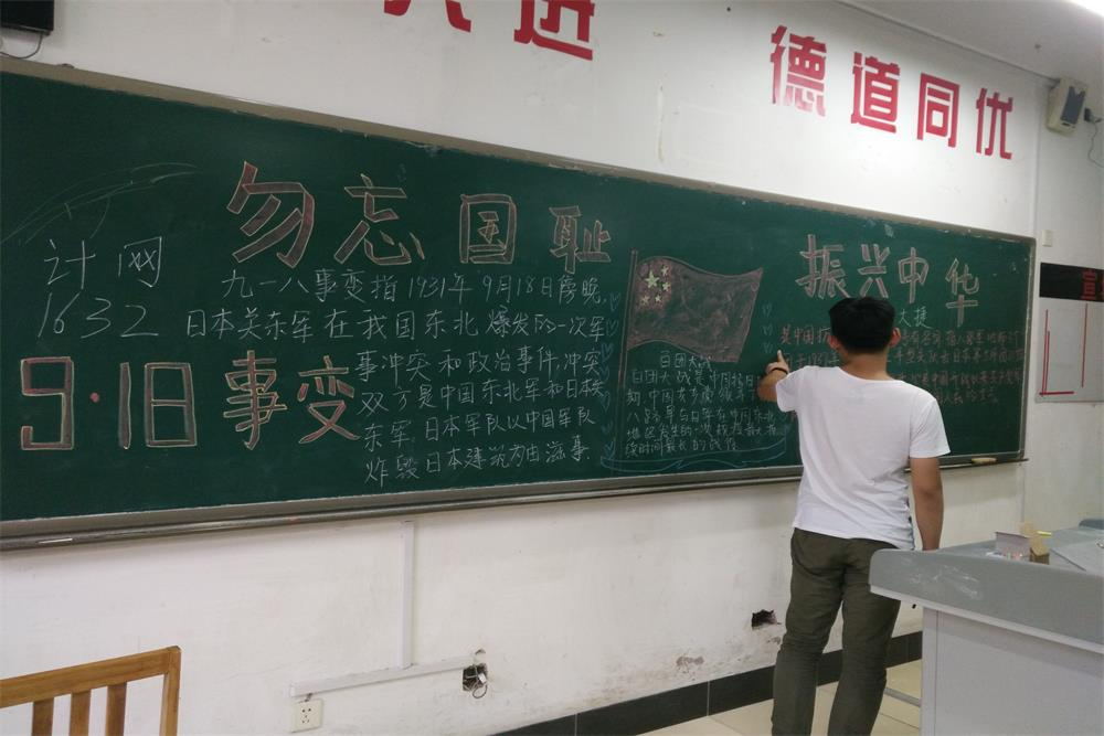 不知歷史,何以為鑒。為進一步加強大學生思想政治教育,大力弘揚愛國主義精神,增強大學生的責任感和使命感,9月18日,鐵道信號與信息工程系舉辦紀念“九一八事變”主題班會。班會上,各班學習了自1931年9月18日日本帝國主義發動侵華戰爭的全過程,極大地激發了同學們的愛國熱情,讓同學們牢記國恥,為中華民族的崛起而發奮讀書。