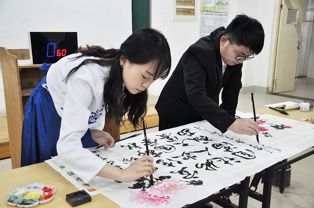 各組選手在“國學猜猜”“風采展示”“一槌定音”等環節中一展國學實力,期間進行的書畫表演更為此次比賽增添了濃郁的傳統文化氣息。最終,電信1631班王瑤瑤憑借深厚的國學功底和突出的賽場表現獲得比賽第一名,電氣1632班潘欣欣和供電1633班李祖安分獲二、三名。