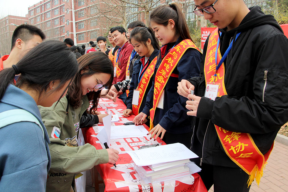 為更好的傳承和弘揚雷鋒精神,鐵道機車與機電裝備系雷鋒協會于3月22日中午舉辦了大型簽名活動。學校近千名師生在“無私奉獻情常在,雷鋒精神心永存”的條幅上鄭重簽下了自己的姓名,表達對雷鋒同志的敬仰和對雷鋒精神的支持。此次簽名活動的舉辦旨在喚起同學們學習雷鋒精神的意識,倡導同學們在生活上發揚雷鋒同志的“釘子”精神,樂于助人,奮進求實。