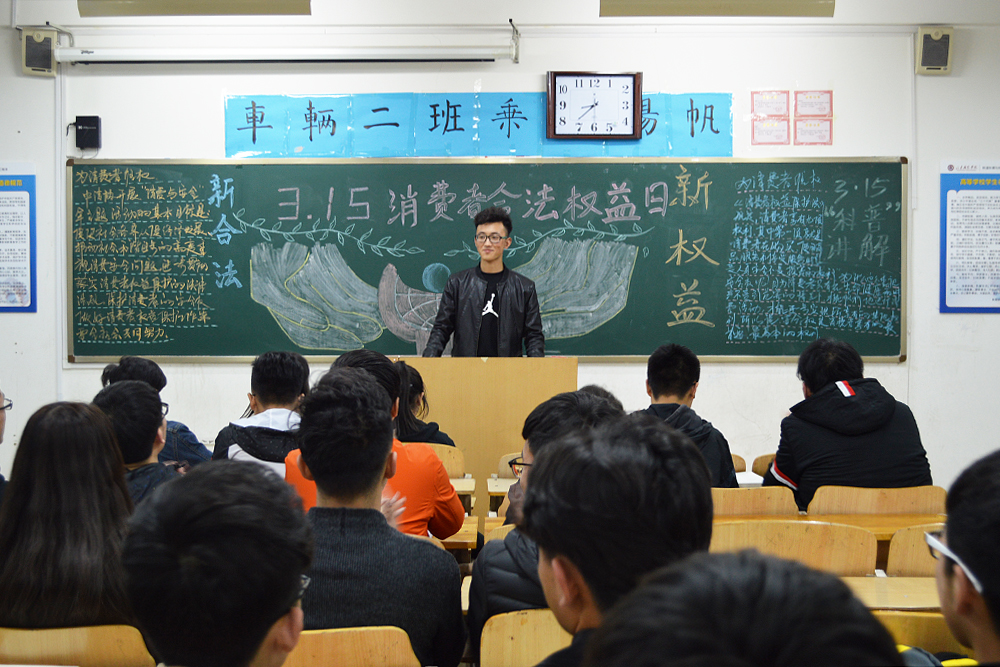 3月14日,鐵道車輛與機械工程系開展了“3.15消權日”主題班會。同學們在班會上各抒己見,暢所欲言,把自己平時所見所聽互相分享,討論當面對侵權或者消費欺詐等狀況時,應該如何維護自己的合法權益。此次班會讓同學們意識到了消費者權益的重要性,更讓大家明白了當權益受到侵犯時,應采取怎樣的途徑維權,使消費者權益意識深入同學們的心中。