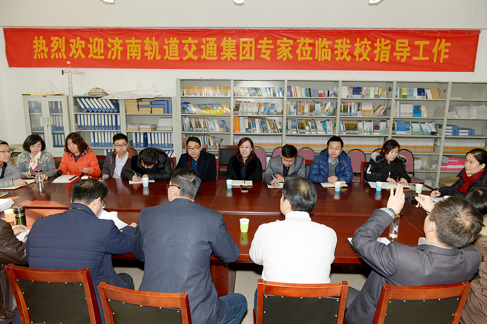 徐冬向考察團介紹了學院近幾年的發展情況;張少飛就創新訂單班學生選拔模式進一步達成落實意見;王紹軍就訂單班培養特色、學生管理、實習實訓及訂單班驗收等問題進行了匯報。趙白雪介紹了濟南地鐵的最新規劃和建設情況,表達了企業對學校訂單培養的關注。期間,考察團成員按專業與我院訂單培養專業負責人就人才培養方案、培訓基地建設、師資雙向交流等展開了討論。隨后,考察團一行參觀了我校城軌類專業實訓室。