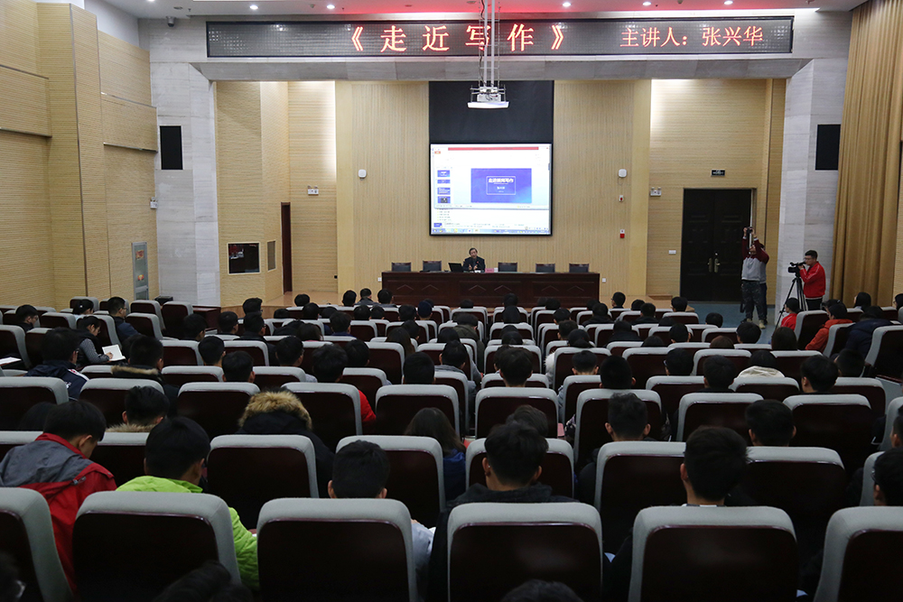 12月4日晚,我院舉辦“走近寫作”專題講座,基礎部(思政部)邀請到中國教育報山東記者站副站長張興華研究員到校與師生面對面交流寫作心得,傳授寫作技巧。學院黨委宣傳統戰部負責同志,大學生記者團、電視臺、廣播站成員等200余人參加講座學習。