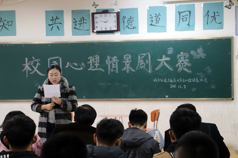 比賽現場,同學們用鮮明的話劇場景演繹出同學們內心深處的世界,表現同學們心理情況的同時,還糾正了對自身心理狀態的調節方式。城市軌道交通車輛1833班心理劇貼近生活問題,用劉小北在大學由孤立敏感成長為大方男孩的心路歷程,表現出宿舍相處中應該相互體諒,相互關懷的相處方式。 城市軌道交通運營管理1831班真實還原當代學生的心理問題,心懷夢想的四位大學生屢遭打擊,灰心喪氣,經兩位學長細心開導,最終恢復斗志不斷進取。活動最后,武文玉老師對各參賽隊作了細致點評。