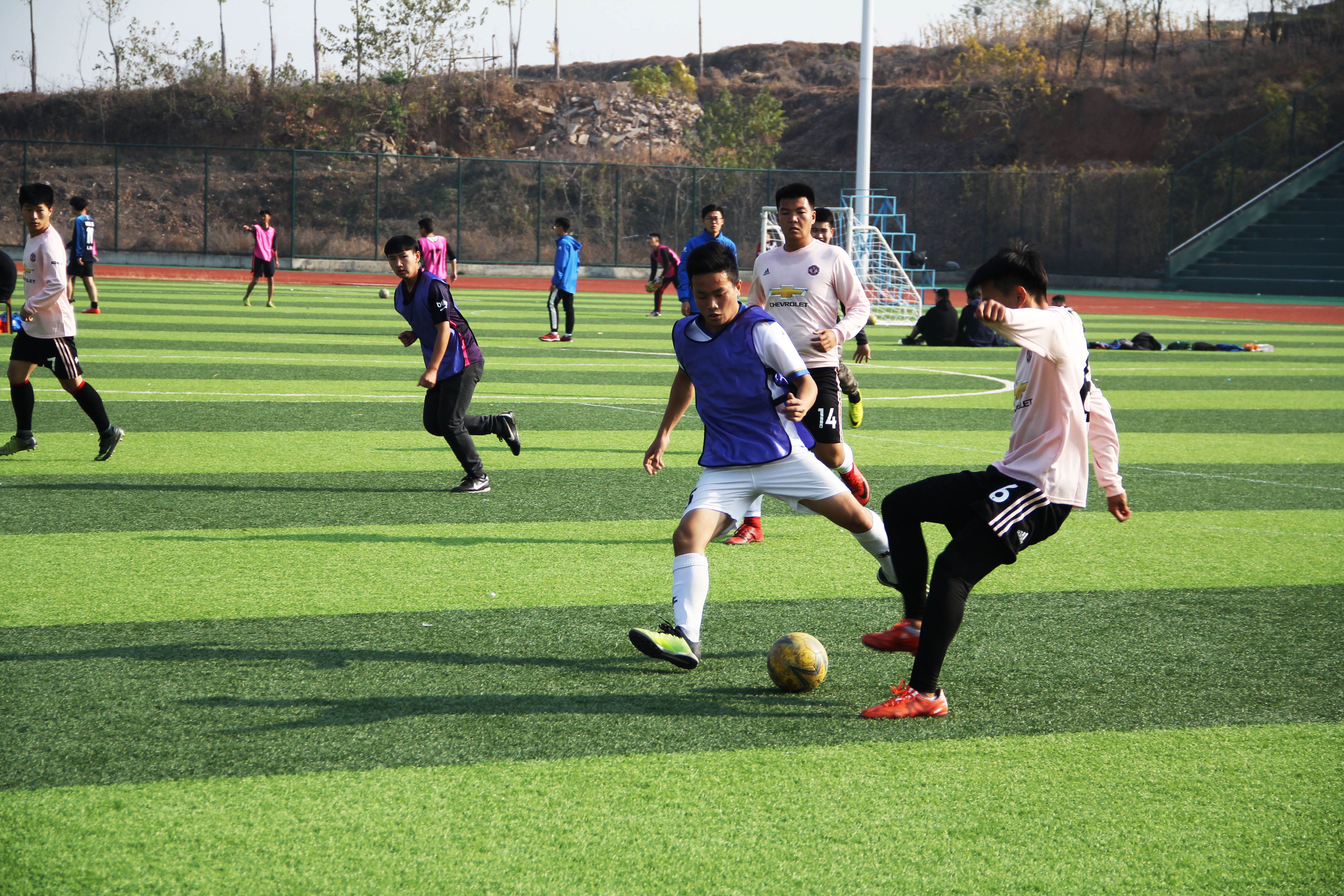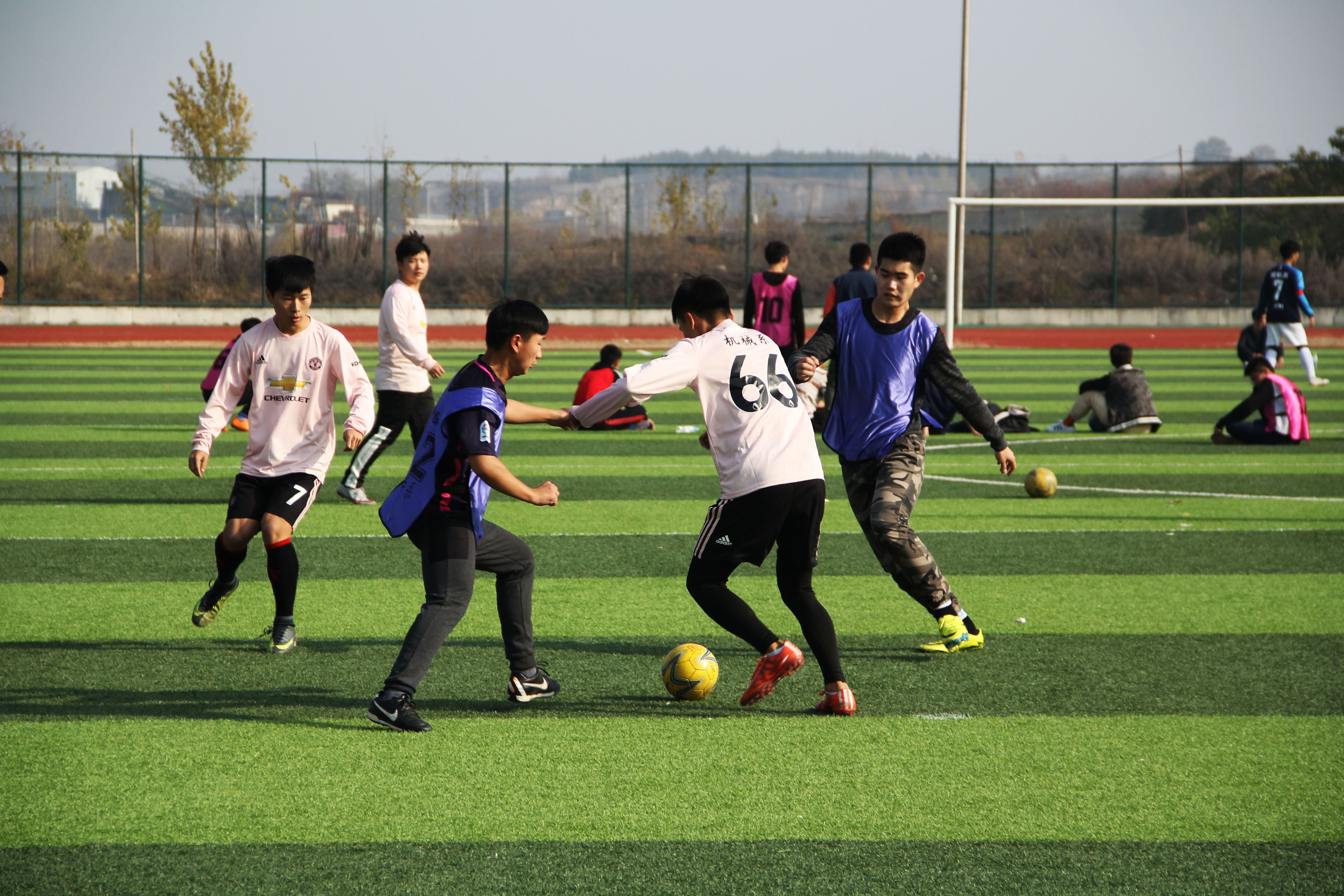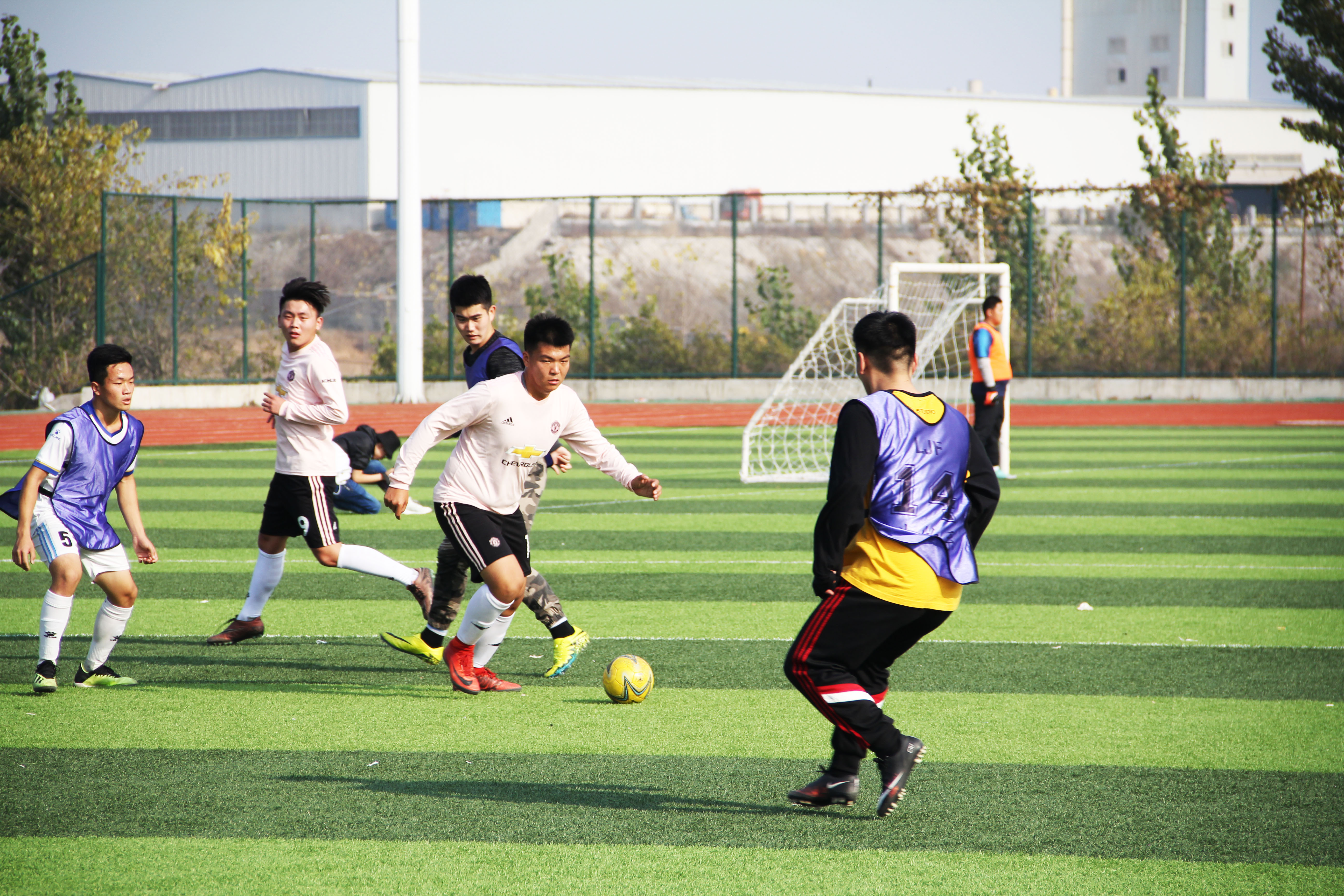 “傳球,傳球”“進了!”一個個專業不失水準的踢球動作,一聲聲飄逸而跌宕起伏的吶喊,一層層完全被賽場廝殺所感染并揪著心的觀眾。如此精彩的一幕在學校足球場上呈現出來,這正是鐵道車輛與機械工程系隊與生物工程系隊展開的一場精彩紛呈的球技對決。