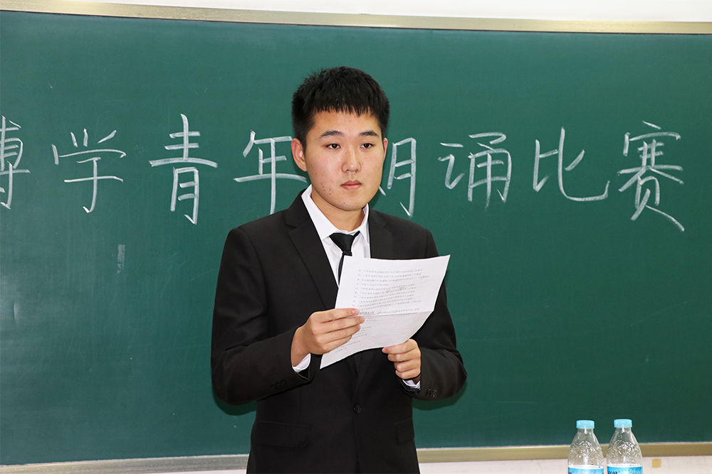 經過初賽、復賽的層層選拔,最終決出21名選手會師決賽。首先登臺的一號選手任曉飛朗誦《再別康橋》,他輕盈柔和的語調感染了在場的觀眾,優美的節奏像漣漪般蕩漾開來,仿佛置身于黃昏下的康橋,讓人回味無窮。三號選手李滿芳抑揚頓挫、一氣呵成,將膾炙人口的《木蘭詩》演繹的淋漓盡致,贏得臺下掌聲不斷。“先天下之憂而憂,后天下之樂而樂”,七號選手杜學隆一首《岳陽樓記》,語調振起、情辭激昂,仿佛道出了山水樓觀背后,文正公那堅守理想、心懷天下的一生節概。十號選手程穎,為大家朗誦銘文《陋室銘》,單純、簡練、清新的聲音,勾勒出閑雅別致的陋室,朗誦已罷,余韻悠長。十三號選手劉家樂朗誦的《我用殘損的手掌》鏗將有力,殘缺、悲劇、崇高的異樣美感吸引了在場所有觀眾。最終,經過評委們的綜合評判,任曉飛、李滿芳、耿心愉、劉家樂四位選手脫穎而出,贏得本次朗誦比賽。
