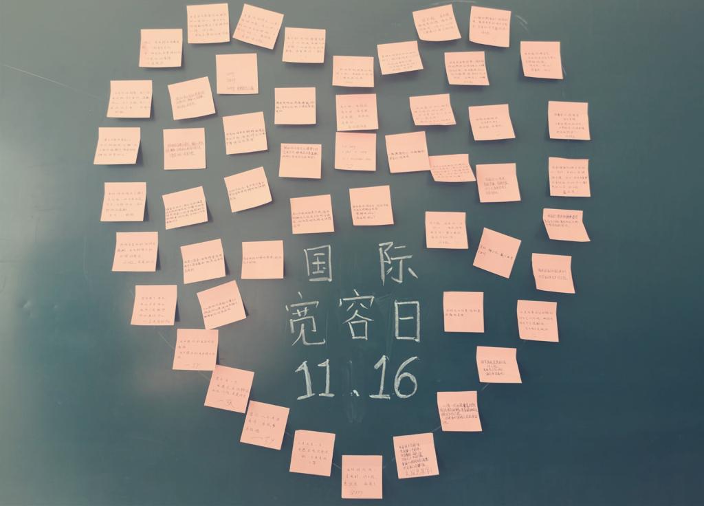 寬容是中華民族的傳統美德,為讓同學們都能擁有一顆寬容的心,去發現生活中的真善美,11月16日,鐵道工程與土木工程系開展“國際寬容日,爭做寬容使者”活動。本次活動以采訪的形式進行,詢問同學們有什么話想對過去的某個人說。同學們紛紛把藏在心里的那句“對不起”說了出來,渴望得到過去某個人的原諒。教學樓的黑板上也被紙條貼成了一個心形,紙條上記錄著同學們對寬容的理解和對未來的想法。有老師也表示,寬容是一種品性,是深藏愛心的體諒。不管學生們做了多少錯事,他們仍然是自己最優秀的孩子。同學們一致表示,爭做寬容使者,使學校各個角落充滿寬容充滿愛,讓校園更加美好。