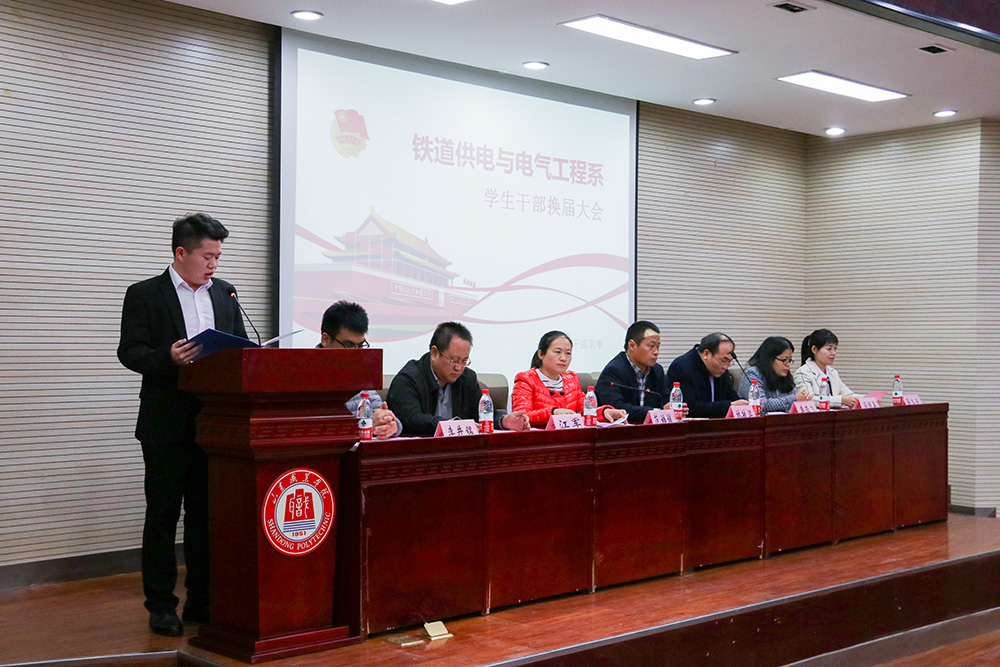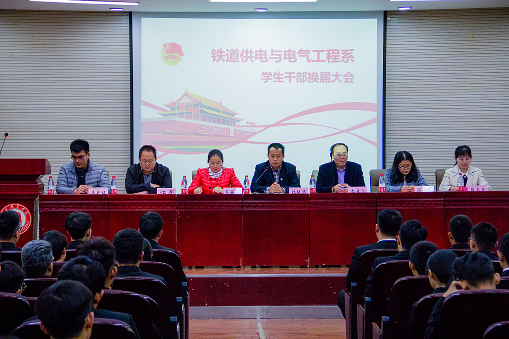 11月15日,鐵道供電與電氣工程系召開第十九屆學生組織成立大會,系主任兼黨總支書記林毓梁,學工辦主任李亞飛,團總支書記范媛媛,團總支副書記江軍,輔導員馮國英、李井銘、薛高芳出席會議,2017級、2018級全體學生干部及2016級學生干部代表參加大會。