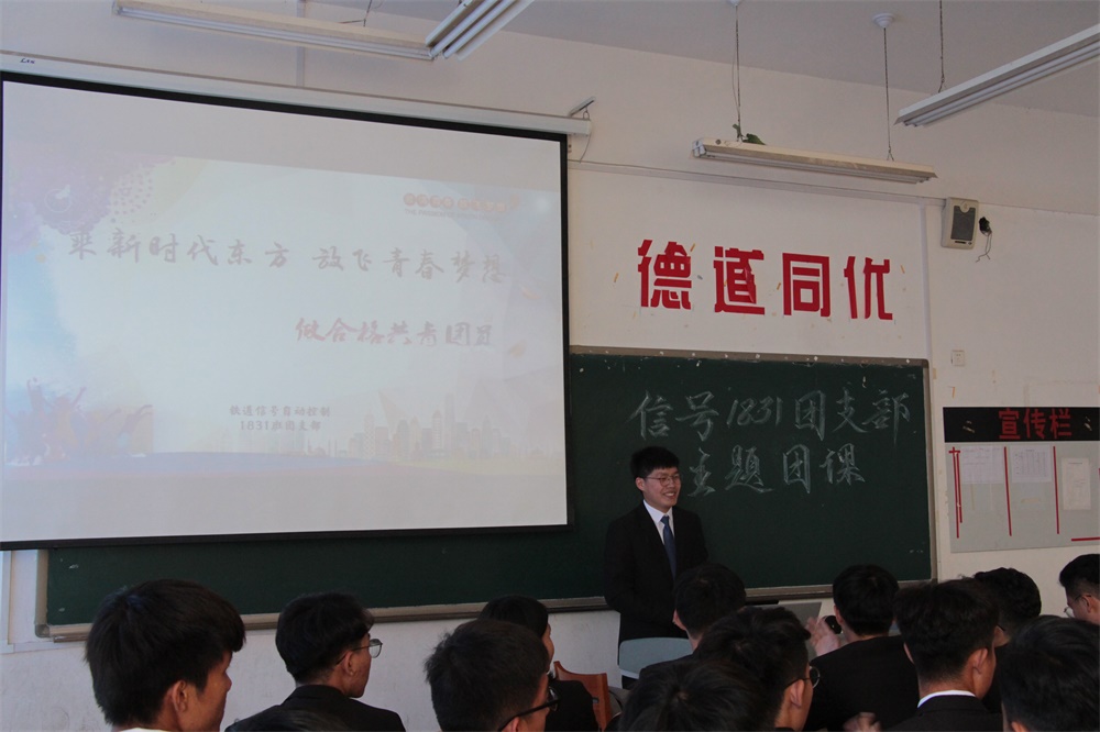 近日,鐵道信號與信息工程系開展了“乘新時代東風,放飛青春夢想”主題團課,輔導員張迎偉老師出席活動。