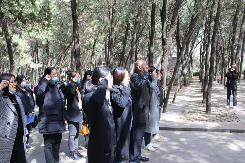 在烈士陵園,全體師生齊唱《國歌》,莊嚴肅穆,向革命烈士紀念碑致獻花籃,鞠躬致敬,表達對革命先烈深切的緬懷之情。