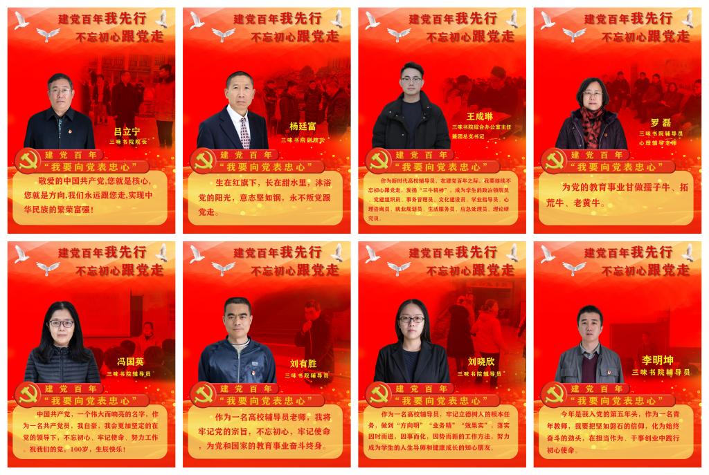 “建黨百年——我要向黨表忠心”,三味書院教師用實際行動將黨的宗旨內化于心、外踐于行,通過在線上匯聚成語錄的形式將對黨說的話獻給黨與祖國。新時代的師生都應肩負起時代的使命,認真開展黨史學習教育,發揚傳承黨的紅色品質,以實際行動和黨員的責任擔當獻禮建黨100周年。