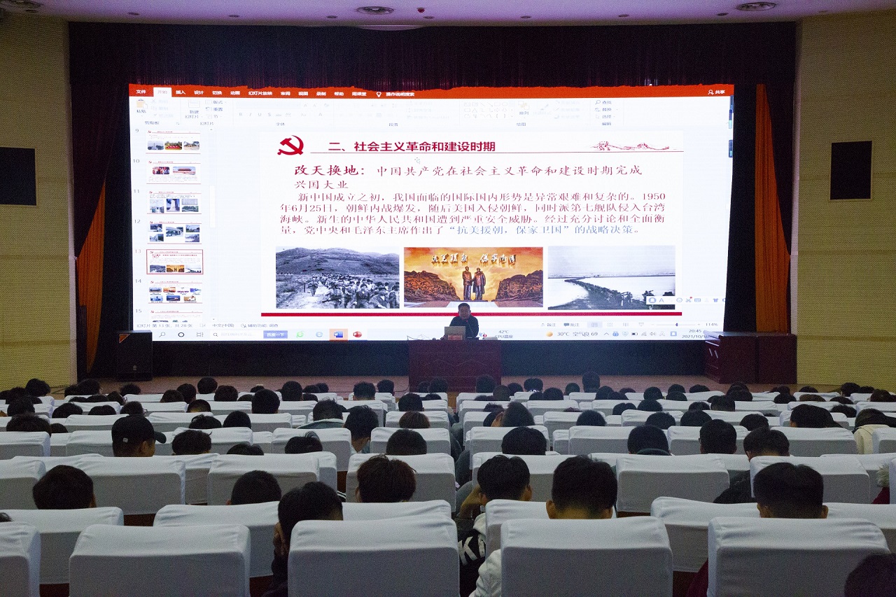 呂立寧運用通俗易懂的語言、豐富翔實的史料、立體多元化的視角,從中國新民主主義革命時期、社會主義革命和建設時期、改革開放和社會主義現代化建設新時期、中國特色社會主義新時代四個階段講授了中國共產黨的百年輝煌,黨課內容站位高遠,內涵豐富,既有歷史的縱深,又有現實的高度,既有理論的厚重,又有實踐的指導,讓學生對黨史有了更全面的認識和了解。最后呂立寧指出,當代大學生應明確人生目標并活出精彩,掌握好專業知識,培養興趣愛好,并囑托大家要不忘初心,再出發!