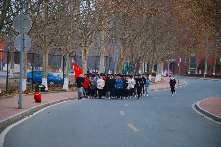 早上六點半,150余名新生迎著寒風準時在2號公寓樓前集合,在學生代表介紹了“一二?九”運動的由來及意義后,環校跑活動正式開始。在隨風飄揚的院旗下,三味學子個個神采奕奕、英姿颯爽,行進的隊伍以五縱列隊排開,腳步鏗鏘有力,他們盡情享受著清晨的陽光和運動的快感,全然忘記天氣的寒冷,胸中唯有緬懷革命先輩、弘揚129愛國精神的一腔熱血。