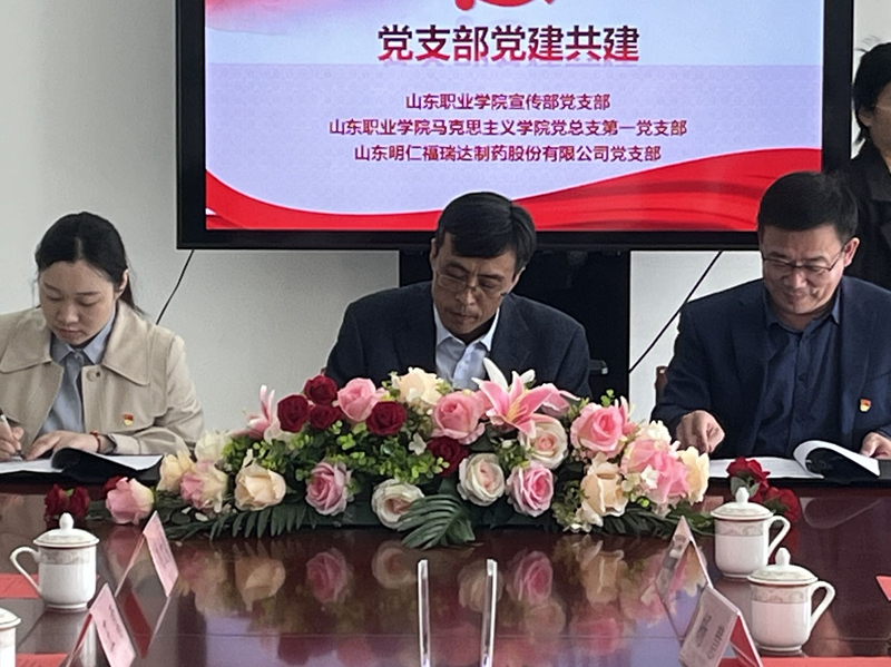 為充分發揮黨建引領作用,構建“資源共享、優勢互補、相互促進、共同提升”的黨建高質量發展新局面,3月31日,我校宣傳部黨支部、馬克思主義學院第一黨支部成員前往山東明仁福瑞達制藥股份有限公司,與山東明仁福瑞達制藥股份有限公司黨支部開展了三方黨建聯創共建活動。山東明仁福瑞達制藥股份有限公司支部書記、總經理賈美春,學校宣傳部部長杜樹元,馬克思主義學院黨總支書記兼院長楊慧及三方支部委員等參加了活動。
