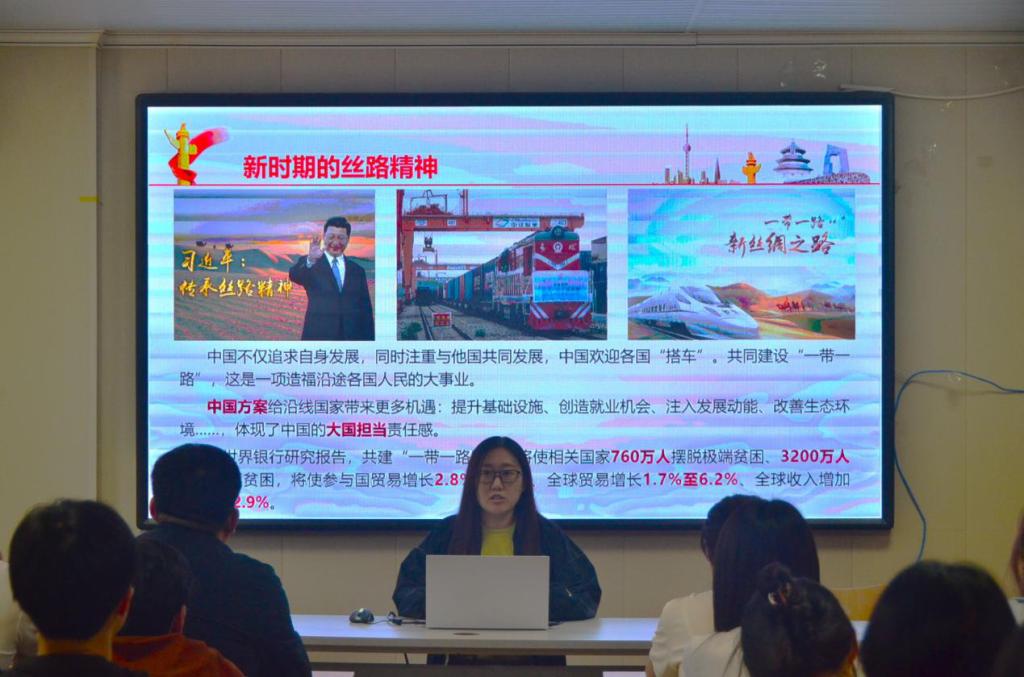 李云飛以《中國精神—絲路精神》為主題,帶領師生回顧了“古絲綢之路”,深刻感悟絲綢之路古今發展歷程以及延伸出來的“絲路精神”內涵,并重點講解了“絲路精神”對于當代大學生的意義。