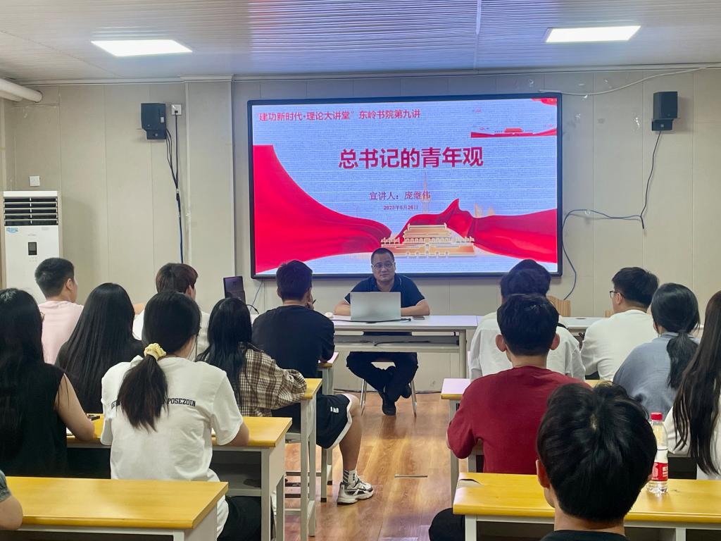 5月26日,東嶺書院“建功新時代·理論大講堂”專題宣講活動第九講在書院右苑一樓黨團活動室開講,鐵道機車車輛學院院長龐繼偉進行宣講,東嶺書院部分老師和學生代表參加。