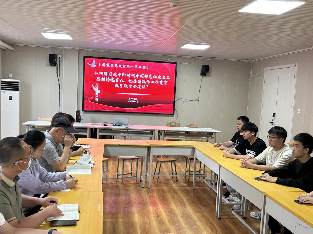 為貫徹落實黨的二十大精神,進一步推進學習貫徹習近平新時代中國特色社會主義思想主題教育走深走實,6月1日,東嶺書院全體老師和部分學生代表于黨團活動室開展第二期解放思想大討論活動。