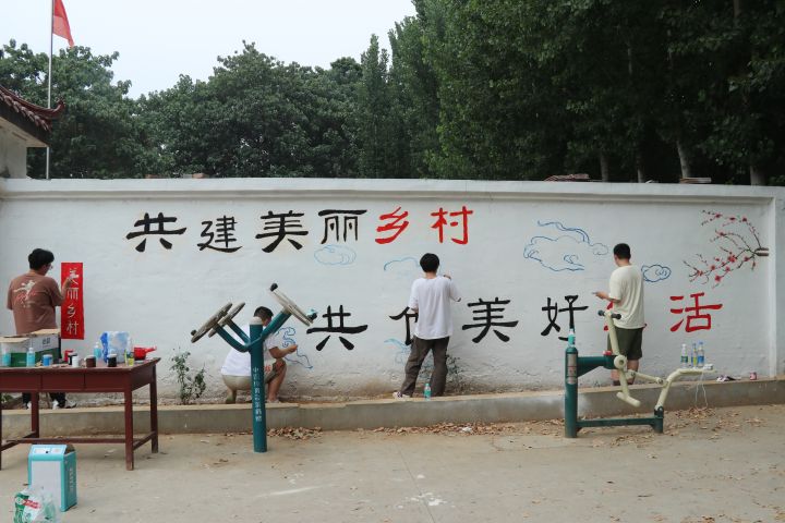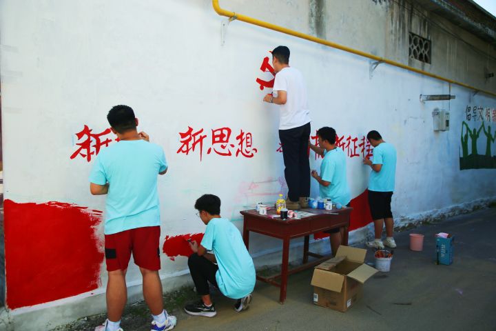 驕陽似火斗酷暑、揮汗如雨戰高溫。成員們用勤勞的雙手和辛勤的汗水投身到火熱的社會實踐,此次志愿墻繪活動不僅讓鄉村換了“新顏”提升了“氣質”,也讓同學們“美育”與“勞育”得以雙向發展,彰顯了新時代大學生的青春風采。
