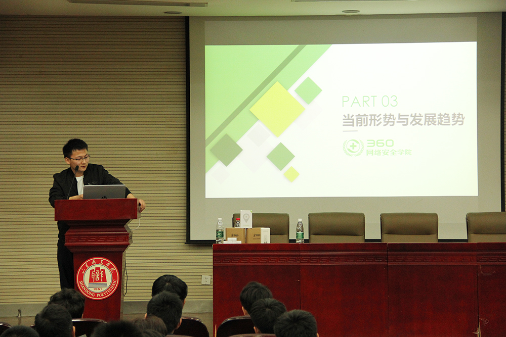 為響應國家完善網絡安全人才培養體系、推動網絡安全教育的號召,4月23日,鐵道工程與土木工程系舉辦了“360安全網絡安全校園行”講座活動。講座從當前網絡安全現狀、基礎環境安全、什么是漏洞等多個方面向同學們講述了當前病毒入侵的安全問題,根據當前網絡人才的缺失方面談論了當下互聯網的安全和未來發展趨勢。整場講座深入淺出,形象生動,受到在場同學的熱烈響應和歡迎。