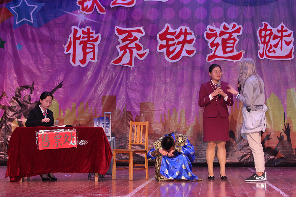 鐵路風采展以一段熱烈的開場舞拉開序幕,鮮艷的禮服與優美的舞姿帶動起了全場氣氛。《車站故事》和《地鐵軼事》分別講述了發生在火車站及地鐵站里的故事,通過站務工作人員與乘客之間的幽默故事展示了站務工作人員的敬業精神,贏得了觀眾們的熱烈掌聲。《接發列車》通過表演者指揮列車的信號旗為觀眾們展示了車站助理值班員的崗位技能;歌曲《坐上火車去拉薩》,歌聲甜美悠揚,伴舞們隨節奏翩翩起舞,極具觀賞性;禮儀風采通過“服務標準展示”向大家呈現了乘務員們服務旅客、情系旅客的精神面貌。張錦師與楊冀老師共同進行的一段禮儀展示更是將本次活動推向高潮,最后的一聲“復興號歡迎您!”向觀眾傳達了復興號動車組列車的風采,表達了對祖國繁榮昌盛的美好祝愿。由大二學生表演的《那一刻》講述了在一條條鐵路線中的聚散離別,當從遠方歸來,兄弟知道母親生病時毫無猶豫的伸出援手相助,心中一暖,情侶分手后在站臺回憶著過去發生的一幕幕,感人至深。最后,本次風采展示活動在合唱《光陰的故事》中完美落幕。
