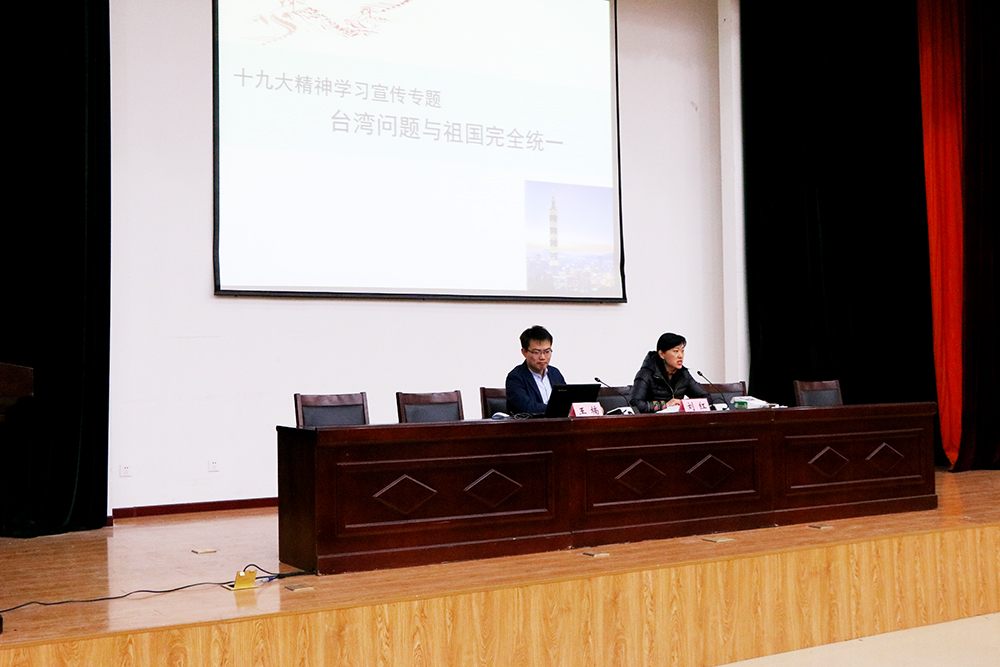 報告中,王楠結合黨的十九大精神學習體會,圍繞黨的十九大報告第十一部分,從解決臺灣問題與實現祖國完全統一的意義、中央對臺工作部署、對臺工作要有信心和耐心等三個方面作了深入講解。
