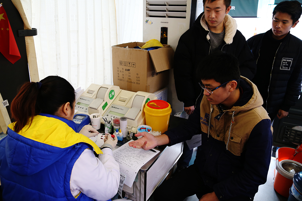 活動開始前,青協志愿者們以飽滿的熱情投入到準備工作當中,布置場地、迎接獻血車。活動如期開始,志愿者們組織獻血的同學們排隊、體檢、填表并告訴他們獻血時的注意事項。對于許多第一次前來獻血的同學,醫護人員及志愿者們為他們耐心的解答,梳理心理上的難關。經過前期的宣傳,加上志愿者們現場的努力,越來越多的同學積極地加入到獻血的隊伍中去。寒風瑟瑟,這樣惡劣的天氣也未能阻擋同學們的獻血熱情,獻血隊伍越排越長,有些同學甚至犧牲自己的午休時間,與舍友結伴前來排隊獻血,足可見大家的飽滿熱情。