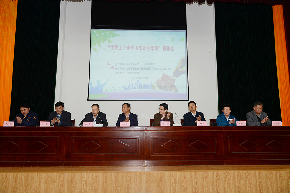 為大力弘揚“工匠精神”,充分發揮職業院校培育和踐行“工匠精神”的教育資源優勢和引領示范作用,推動我省職業院校創新發展,12月27日,由山東省總工會、山東省教育廳指導,山東省職業技術教育學會、山東工人報社主辦的“優秀工匠進校園”活動走進我院。