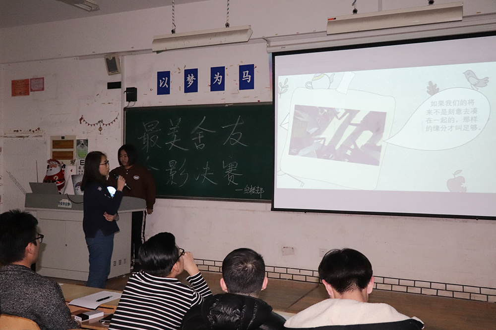 “我是8123宿舍代表,我的舍友們羞澀又不失開放,內斂又不失陽光,與他們的在一起的點點滴滴將會是我大學生活中最美好的回憶。”“這張合影是我們宿舍第一次出去聚會在餐廳門口照的,那時剛軍訓完的我們是真黑啊,美顏也不好使呢。”一張張照片,一句句話語,各個宿舍代表用樸實、真誠的語言訴說著自己與舍友的精彩瞬間,講述著照片背后的動人故事。經過幾輪精彩講解,8123宿舍獲得此次最美舍友合影比賽第一名,9120宿舍、9201宿舍分獲二、三名。